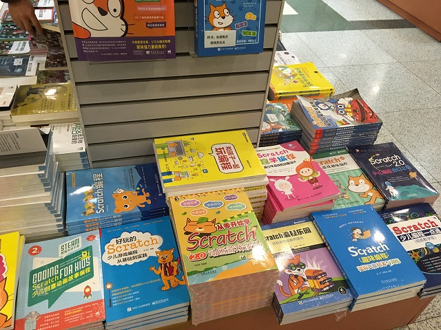子ども向けの教育の本も平積み。翻訳本が中心だった。